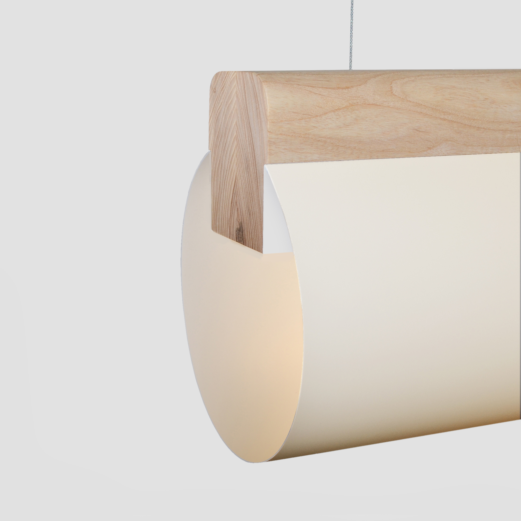 The PL3 Light is a linear LED pendant lighting fixture made by the joining of ash wood and formed polyethylene. It focuses on the connection between natural and man-made materials.