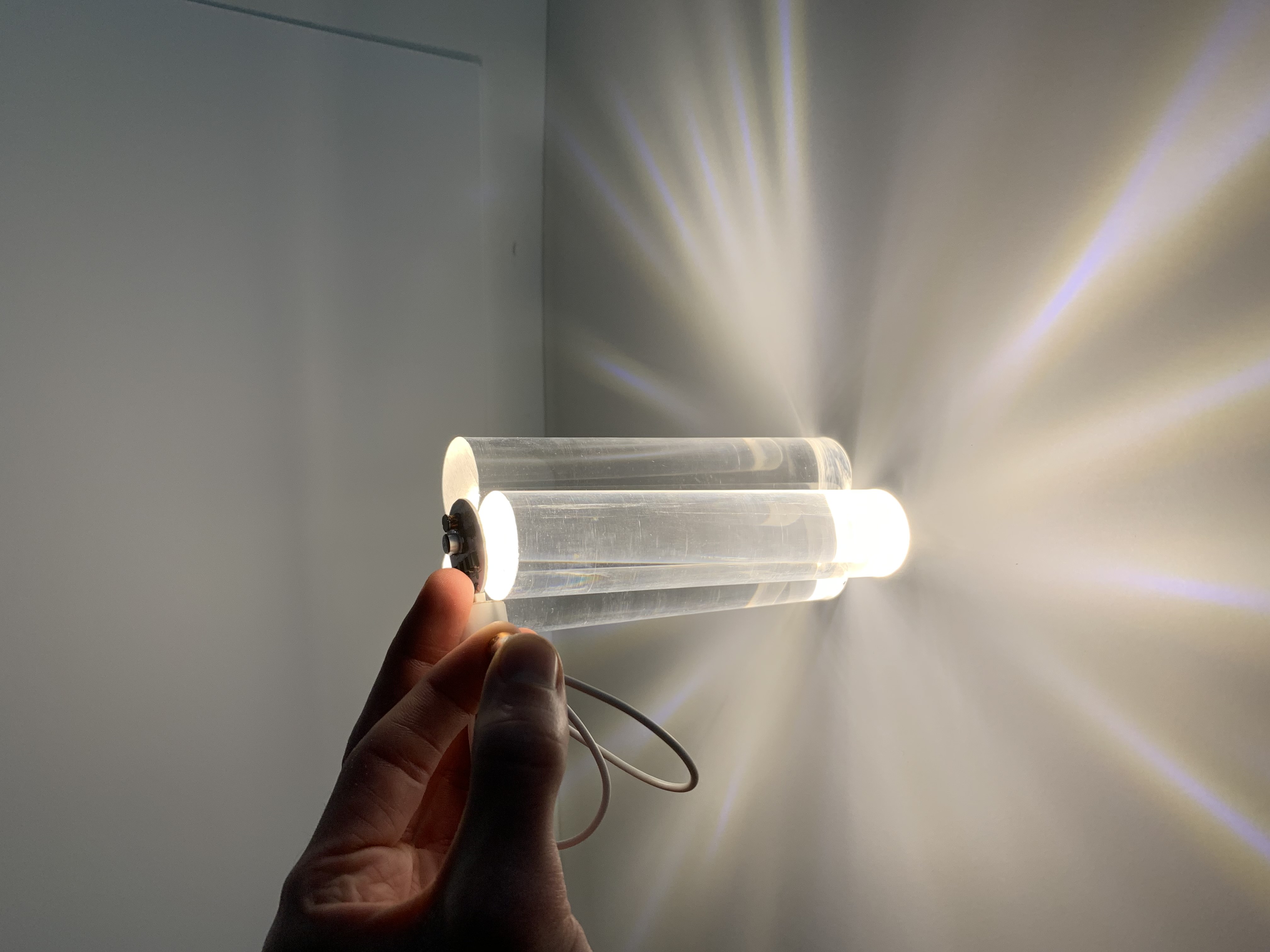 The Tsukiji Light is inspired by the way industrial strapping and rubber bands are utilized when transporting fish to-and-from the fish markets in Japan. The piece explores raw versus refined materials to bundle together geometric forms in order to create an interesting lighting composition.